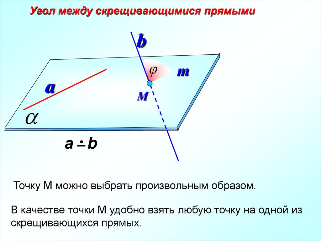 Угол между скрещивающимися прямыми a и b равен