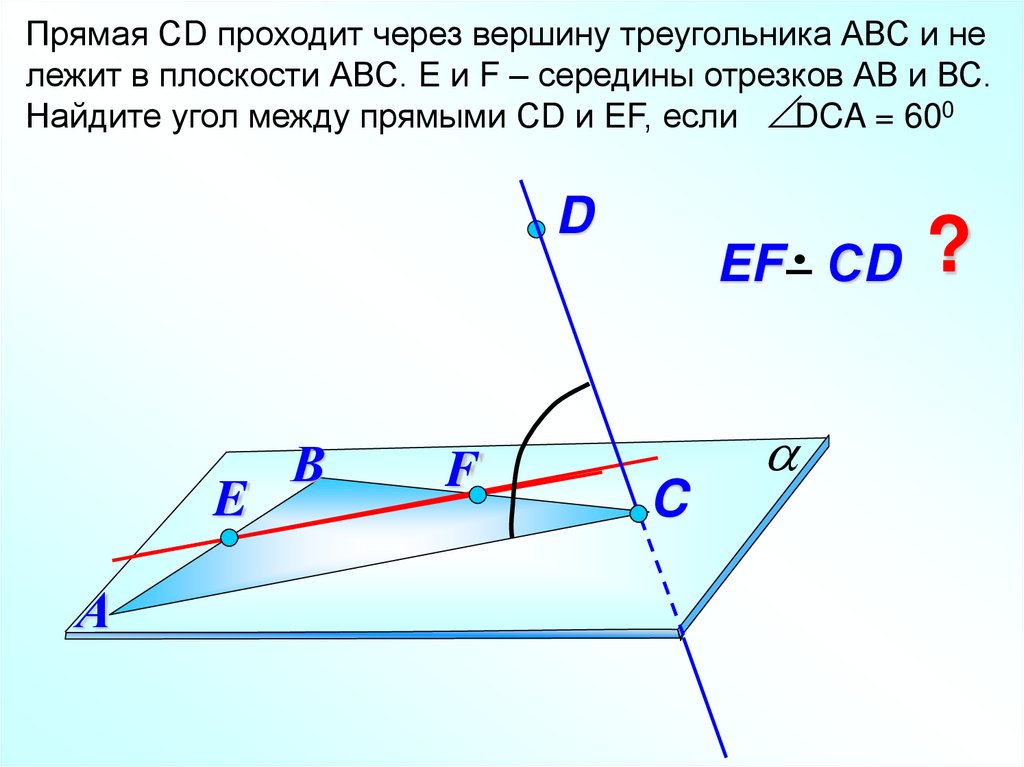 Прямая СD проходит через вершину треугольника АВС и нележит в плоскости АВС. E и F – середины отрезков АВ и ВС.
