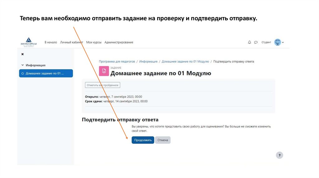 Теперь вам необходимо отправить задание на проверку и подтвердить отправку.5.