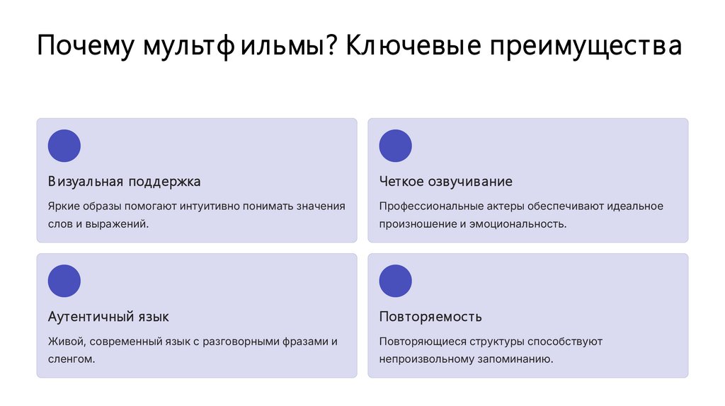 Почему мультф ильмы? Кл ючевые преимуществаВ изуал ьная поддержка