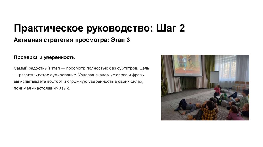 Самый радостный этап — просмотр полностью без субтитров. Цель