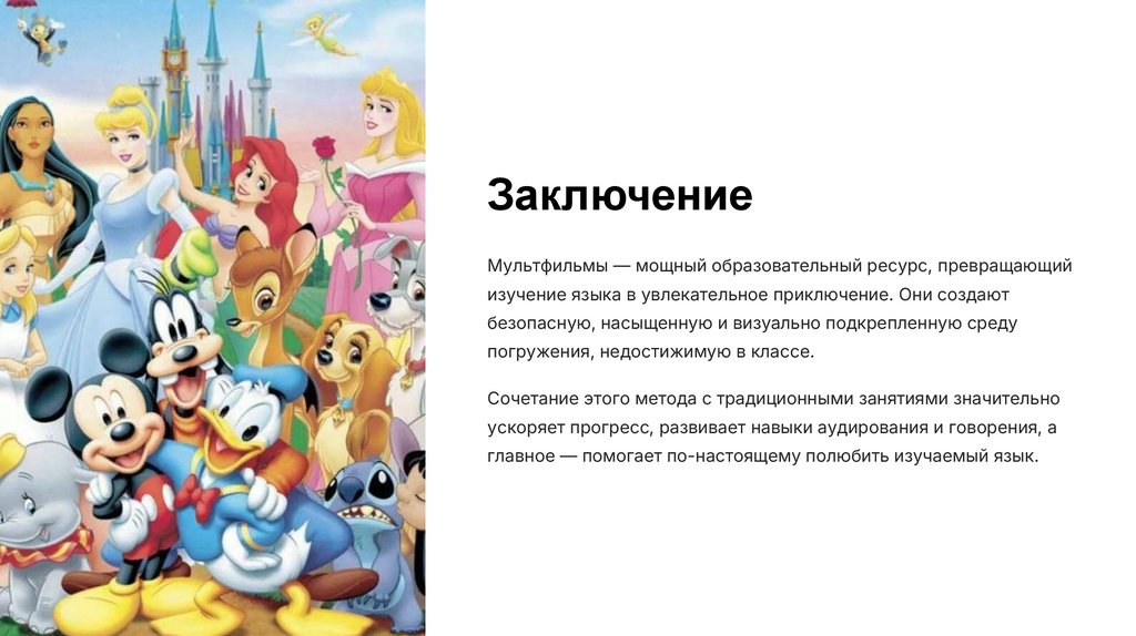 ЗаключениеМультфильмы — мощный образовательный ресурс, превращающий