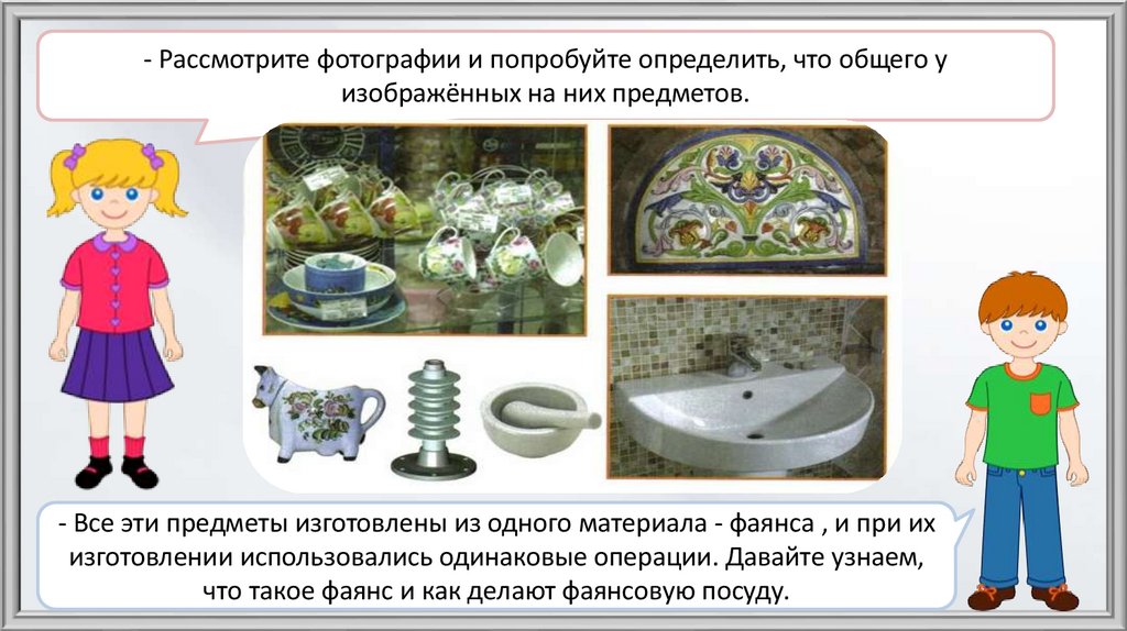- Все эти предметы изготовлены из одного материала - фаянса , и при их