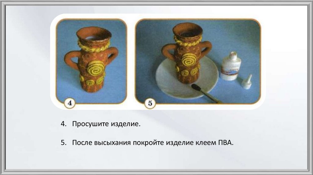 4. Просушите изделие.5. После высыхания покройте изделие клеем ПВА.