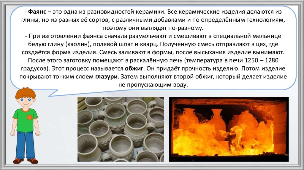 - Фаянс – это одна из разновидностей керамики. Все керамические изделия делаются изглины, но из разных её сортов, с различными добавками и по определённым технологиям,