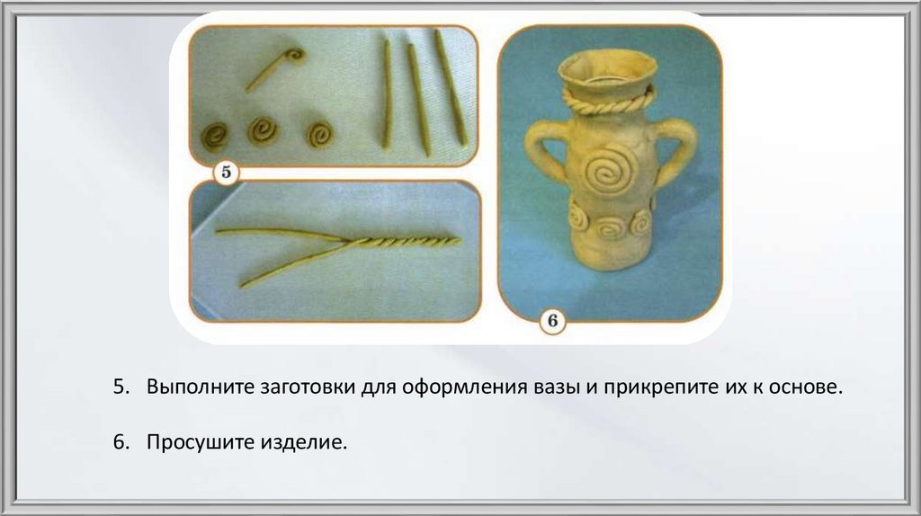 5. Выполните заготовки для оформления вазы и прикрепите их к основе.6. Просушите изделие.