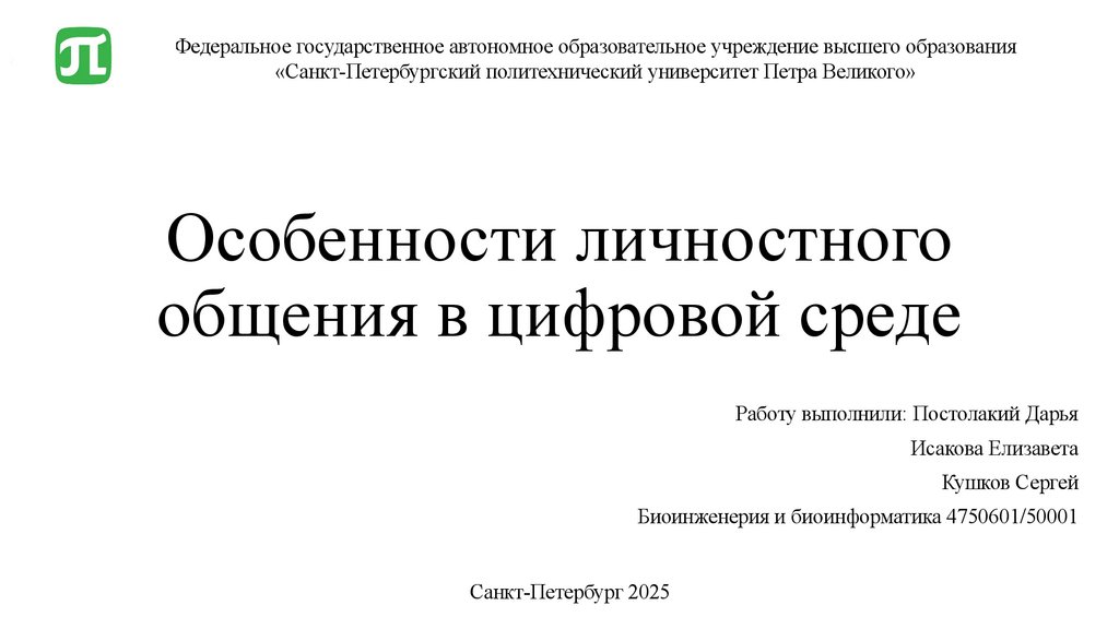 Федеральное государственное автономное образовательное учреждение высшего образования«Санкт-Петербургский политехнический университет Петра Великого»