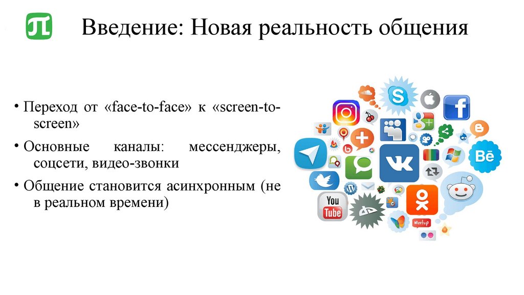 Введение: Новая реальность общения• Переход от «face-to-face» к «screen-toscreen»
