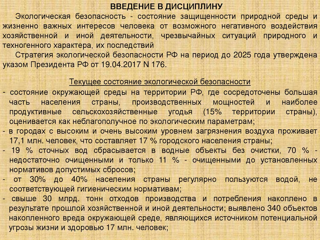 ВВЕДЕНИЕ В ДИСЦИПЛИНУЭкологическая безопасность - состояние защищенности природной среды и