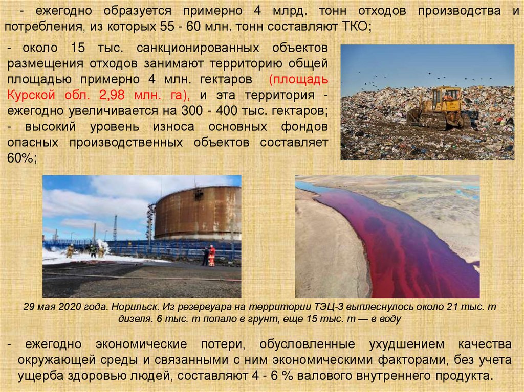 - свыше 30 млрд. тонн отходов производства и потребления накоплено в