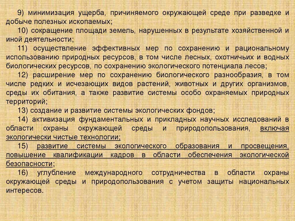 Целями государственной политики в сфере обеспечения экологическойбезопасности являются сохранение и восстановление природной среды,