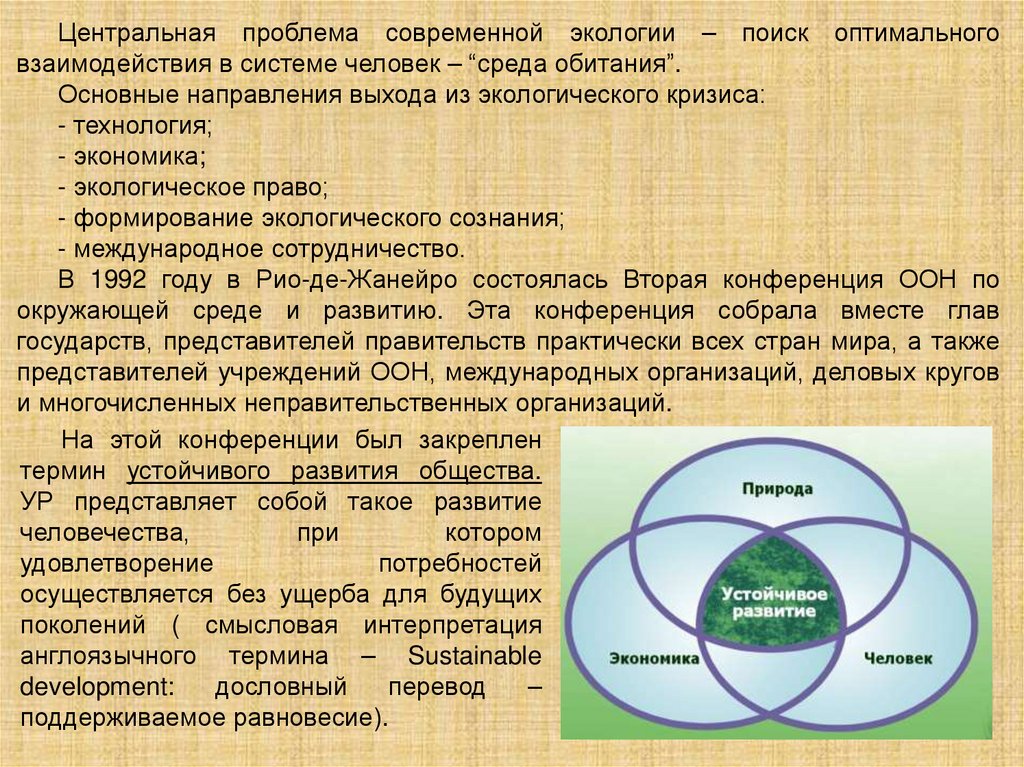 Центральная проблема современной экологии – поиск оптимальноговзаимодействия в системе человек – “среда обитания”.