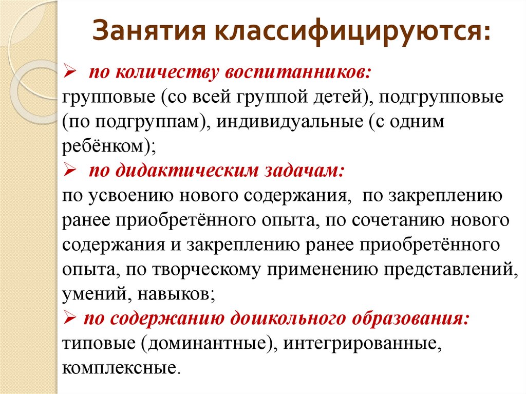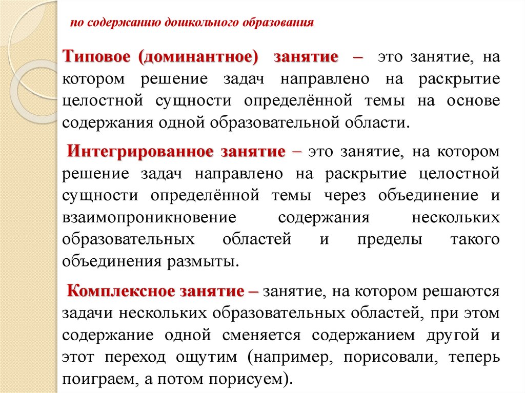 по содержанию дошкольного образованияТиповое (доминантное) занятие – это занятие, на