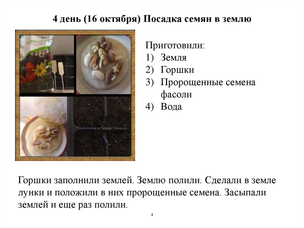 4 день (16 октября) Посадка семян в землюПриготовили: