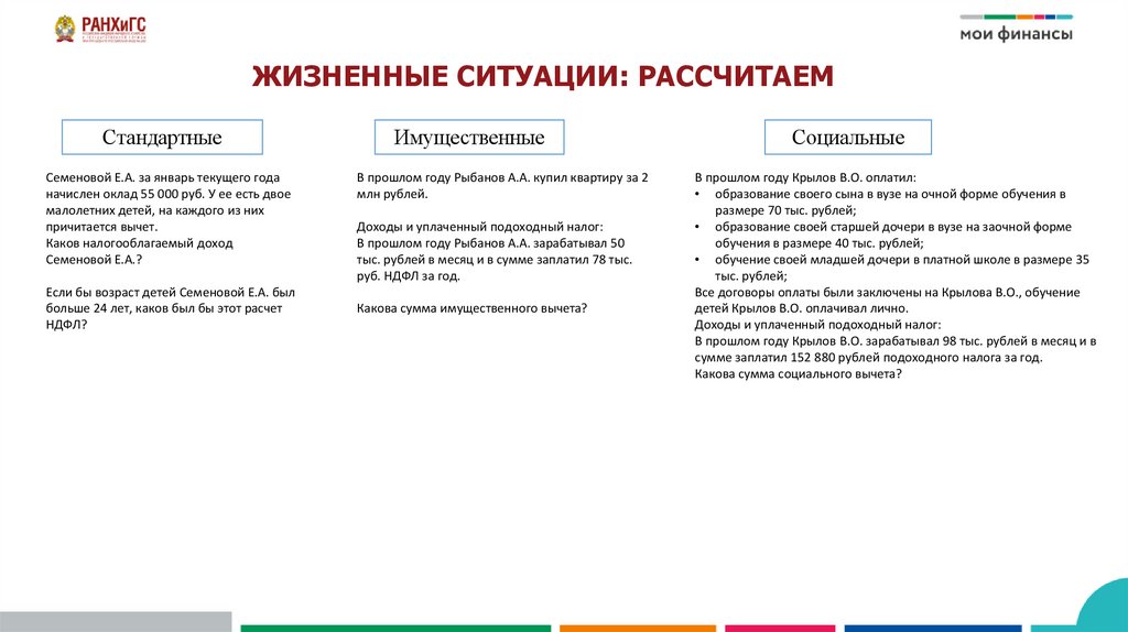 НАЛОГОВЫЕ ВЫЧЕТЫПредставляются отдельным категориям налогоплательщиков.