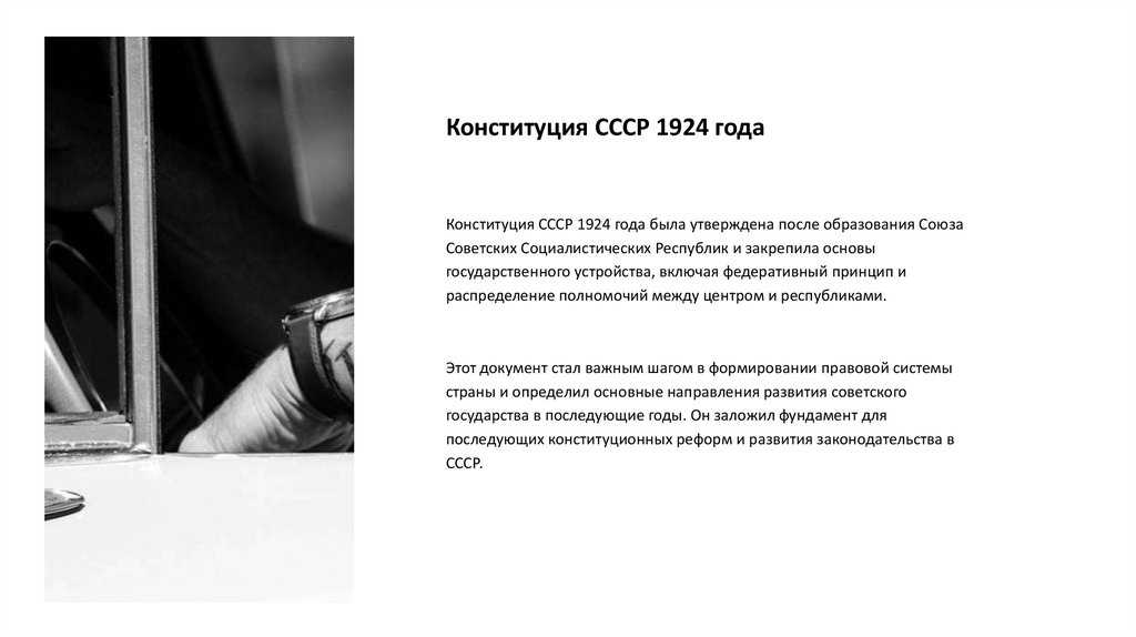Конституция СССР 1924 годаКонституция СССР 1924 года была утверждена после образования Союза