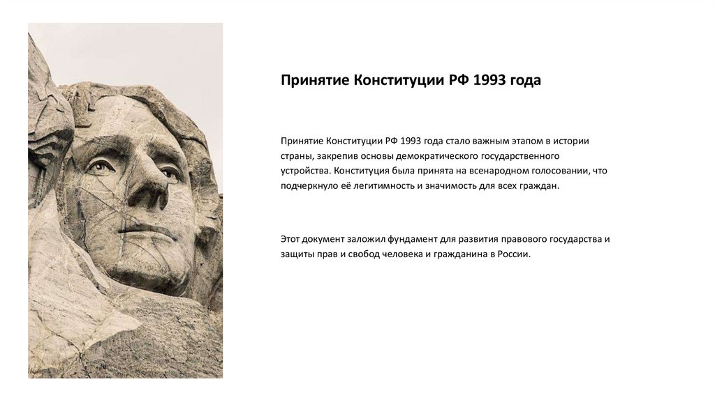 Принятие Конституции РФ 1993 годаПринятие Конституции РФ 1993 года стало важным этапом в истории