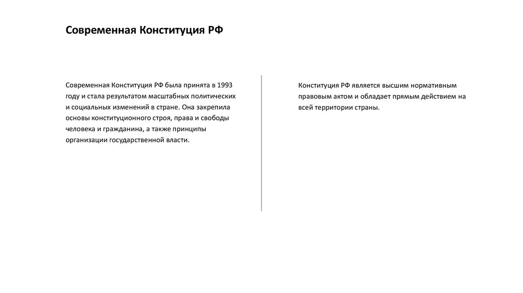 Современная Конституция РФСовременная Конституция РФ была принята в 1993