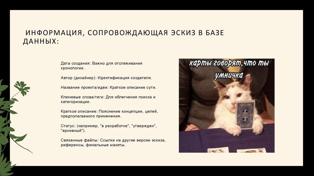 ИНФОРМАЦИЯ, СОПРОВОЖДАЮЩАЯ ЭСКИЗ В БАЗЕДАННЫХ: