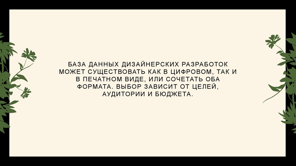 БАЗ А Д АН Н Ы Х Д И З АЙ Н ЕРС КИ Х РАЗ РАБО ТОКМОЖЕТ СУЩ ЕСТВОВАТЬ КАК В Ц ИФРОВОМ , ТАК И