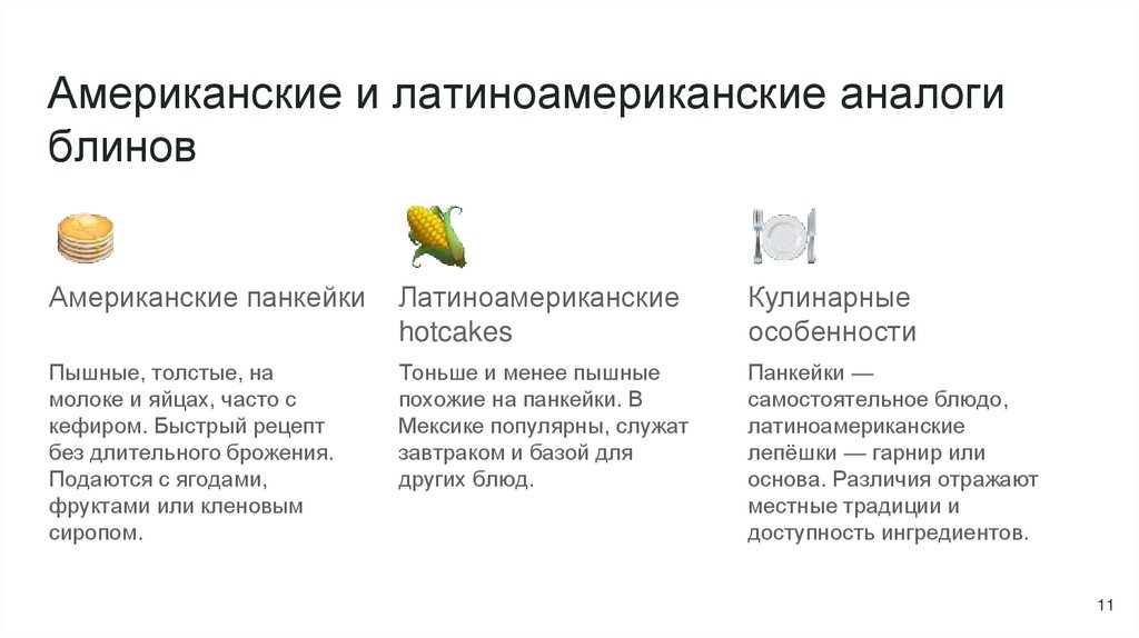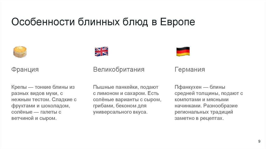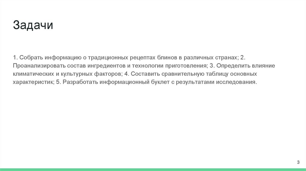 Задачи1. Собрать информацию о традиционных рецептах блинов в различных странах; 2.