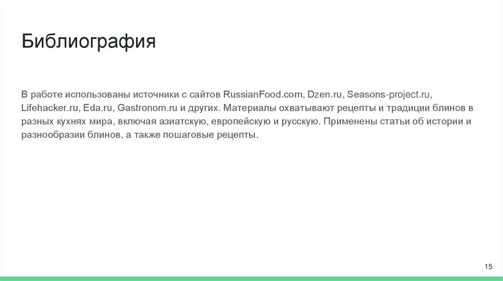БиблиографияВ работе использованы источники с сайтов RussianFood.com, Dzen.ru, Seasons-project.ru,