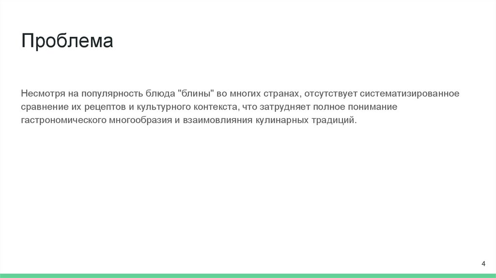 ПроблемаНесмотря на популярность блюда "блины" во многих странах, отсутствует систематизированное