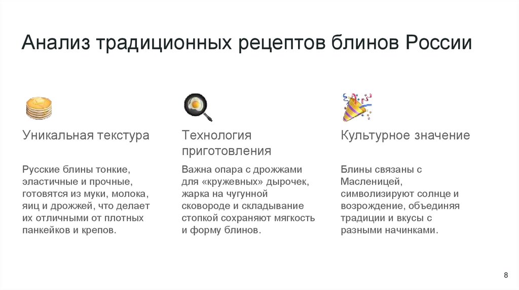 Анализ традиционных рецептов блинов РоссииУникальная текстура
