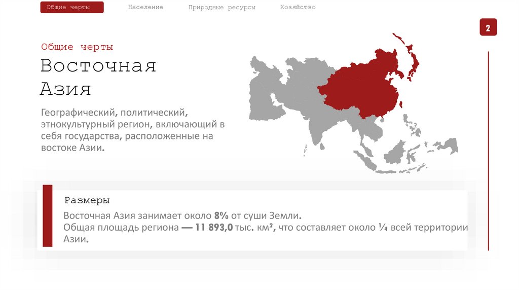 Общая площадь региона — 11 893,0 тыс. км², что составляет около ¼ всей территории