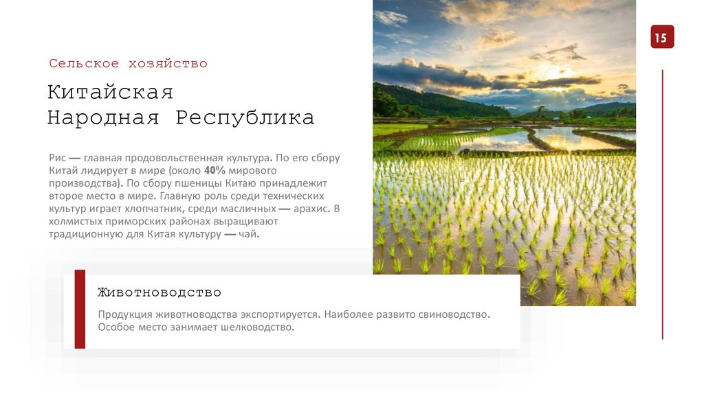Продукция животноводства экспортируется. Наиболее развито свиноводство.