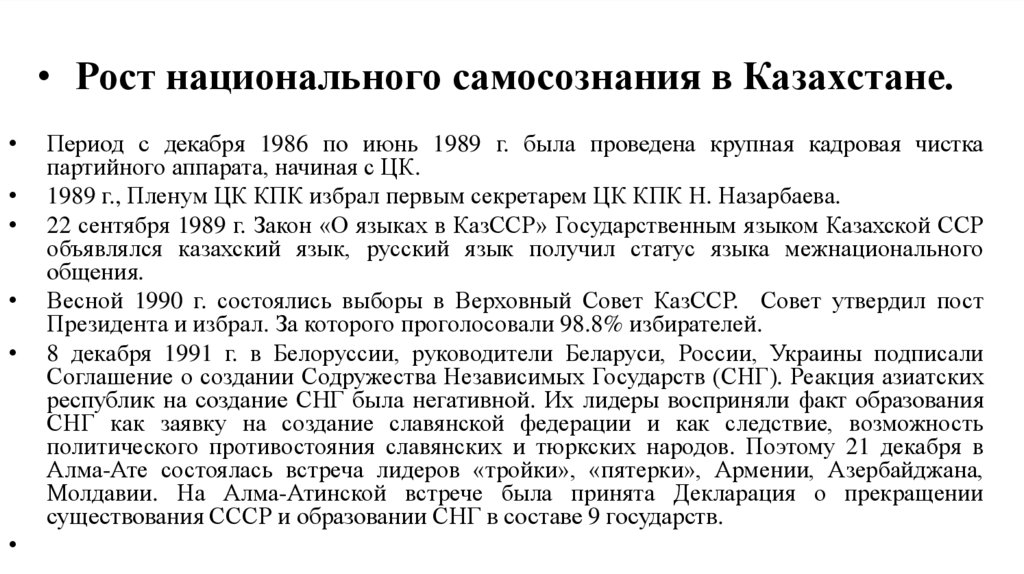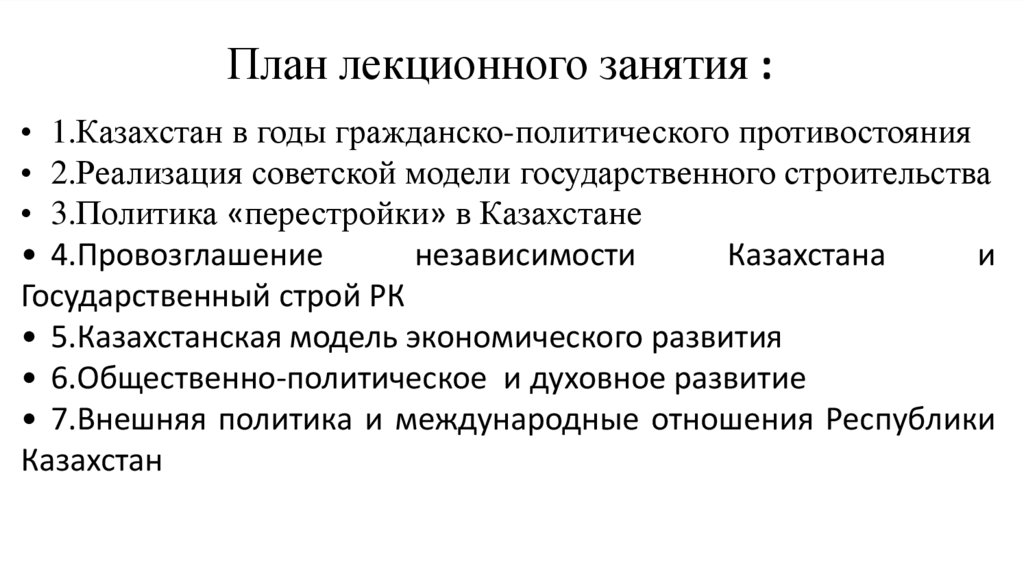 План лекционного занятия :• 1.Казахстан в годы гражданско-политического противостояния