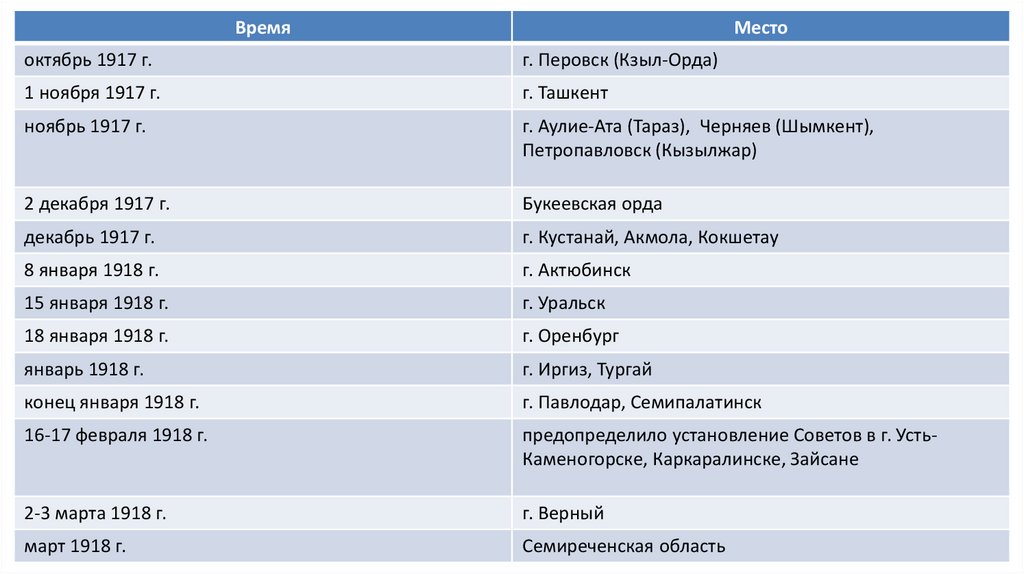 предопределило установление Советов в г. УстьКаменогорске, Каркаралинске, Зайсане