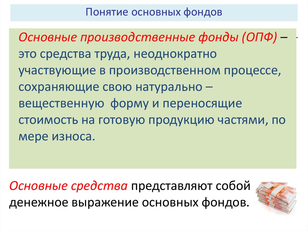 Понятие основных фондовОсновные производственные фонды (ОПФ) –