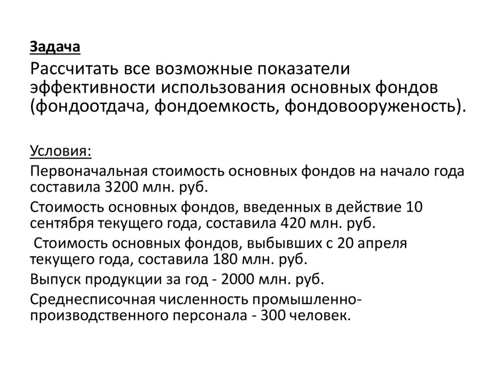 1. Фондоотдача - выпуск продукции в денежном выражении на