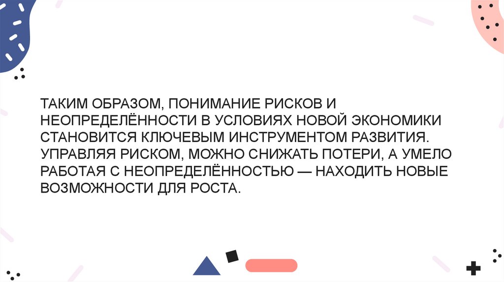 ТАКИМ ОБРАЗОМ, ПОНИМАНИЕ РИСКОВ ИНЕОПРЕДЕЛЁННОСТИ В УСЛОВИЯХ НОВОЙ ЭКОНОМИКИ