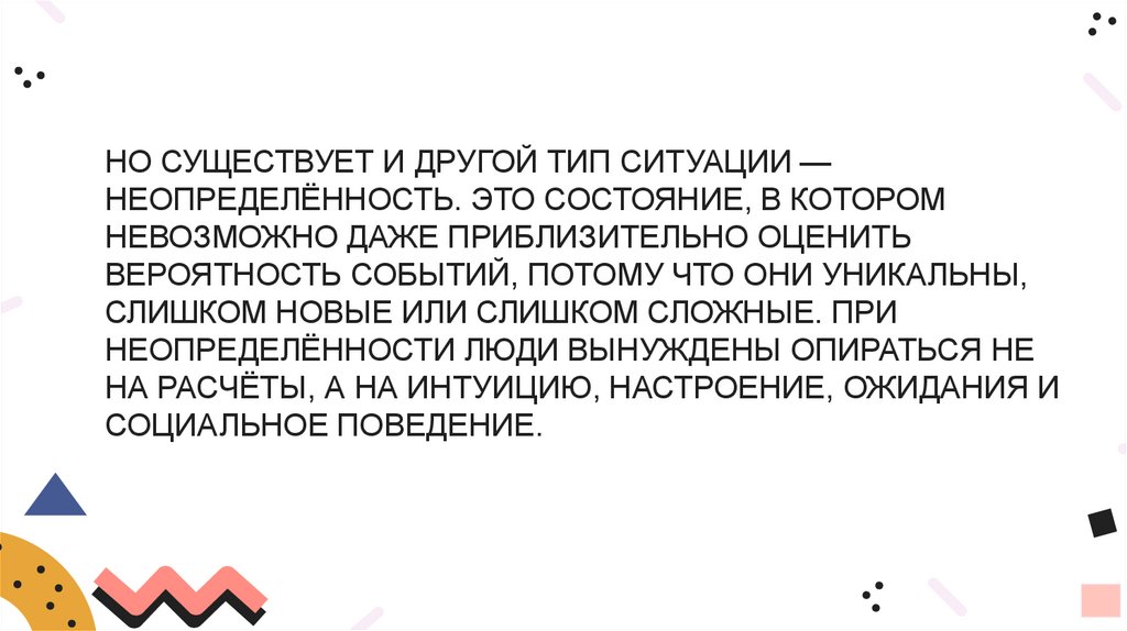НО СУЩЕСТВУЕТ И ДРУГОЙ ТИП СИТУАЦИИ —НЕОПРЕДЕЛЁННОСТЬ. ЭТО СОСТОЯНИЕ, В КОТОРОМ