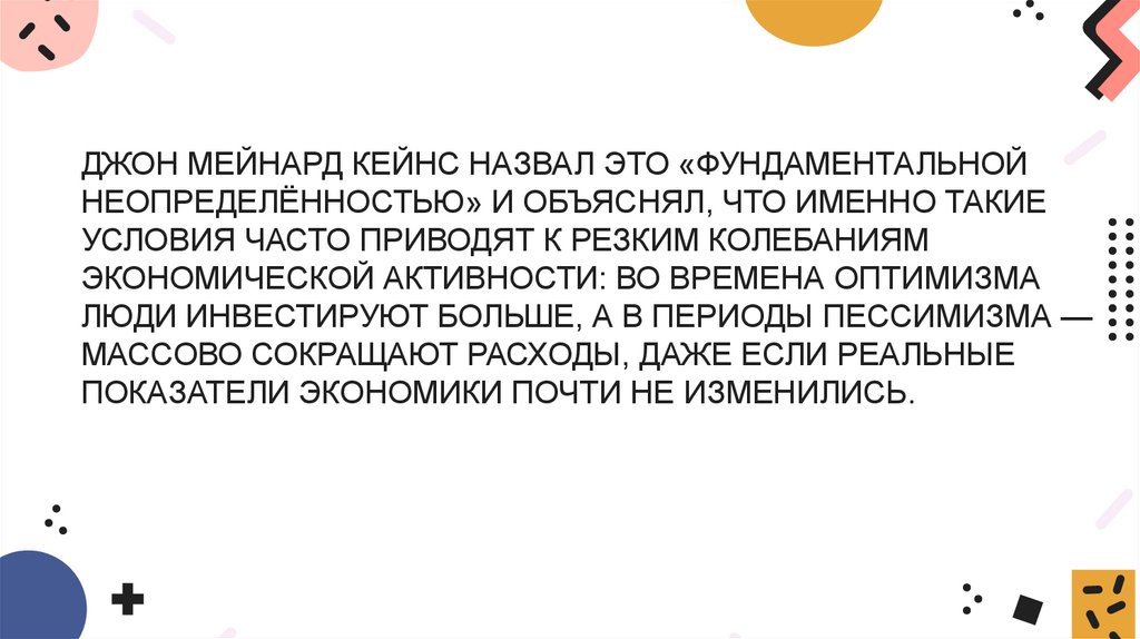 ДЖОН МЕЙНАРД КЕЙНС НАЗВАЛ ЭТО «ФУНДАМЕНТАЛЬНОЙНЕОПРЕДЕЛЁННОСТЬЮ» И ОБЪЯСНЯЛ, ЧТО ИМЕННО ТАКИЕ