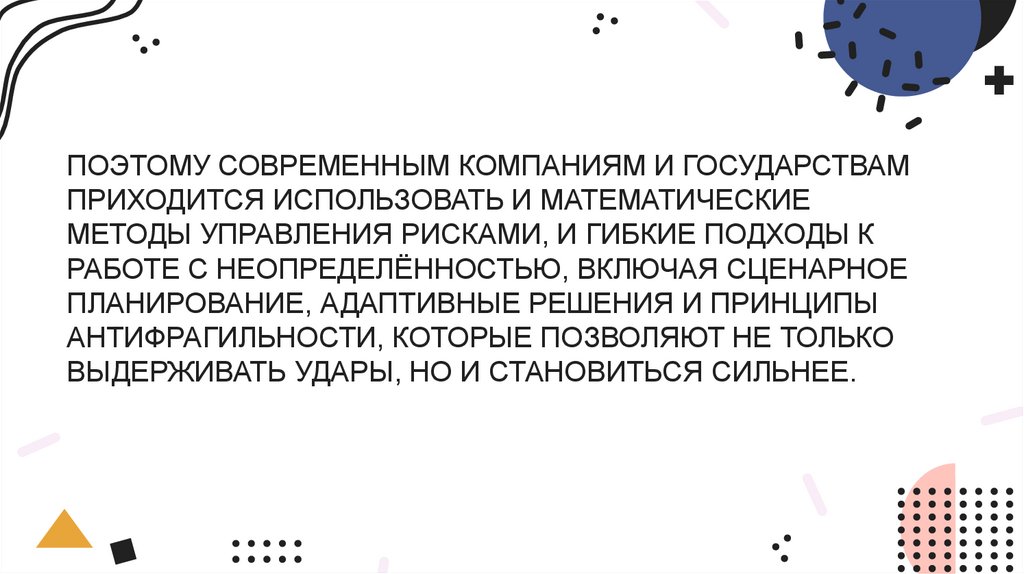 ПОЭТОМУ СОВРЕМЕННЫМ КОМПАНИЯМ И ГОСУДАРСТВАМПРИХОДИТСЯ ИСПОЛЬЗОВАТЬ И МАТЕМАТИЧЕСКИЕ