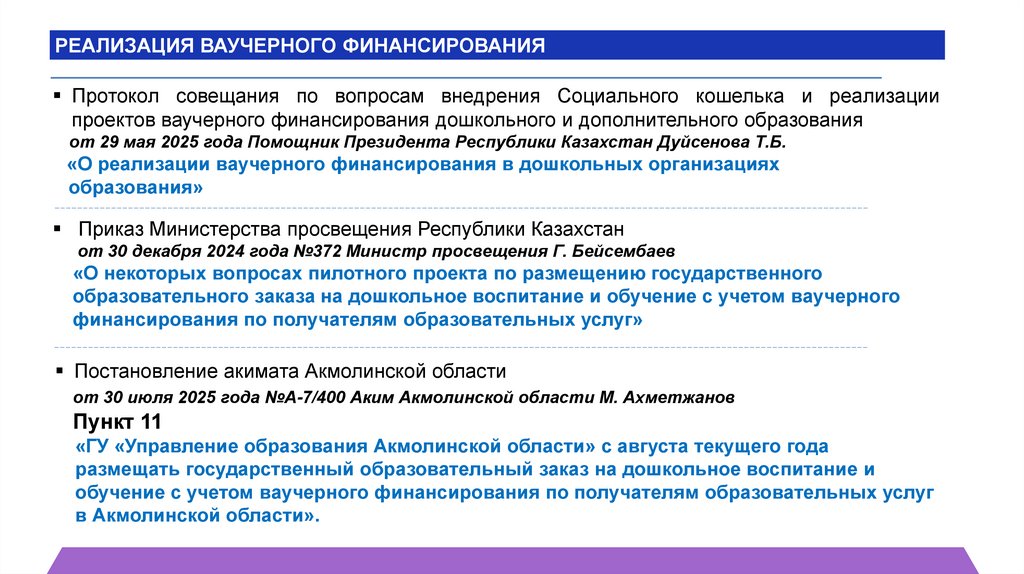 Поэтапный переход на ваучерное финансирование городов областного и республиканского значения,