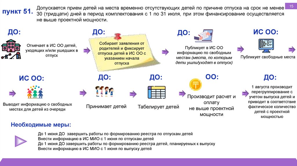 Внести информацию в ИС МИО с 1 июня по отпускам детей
