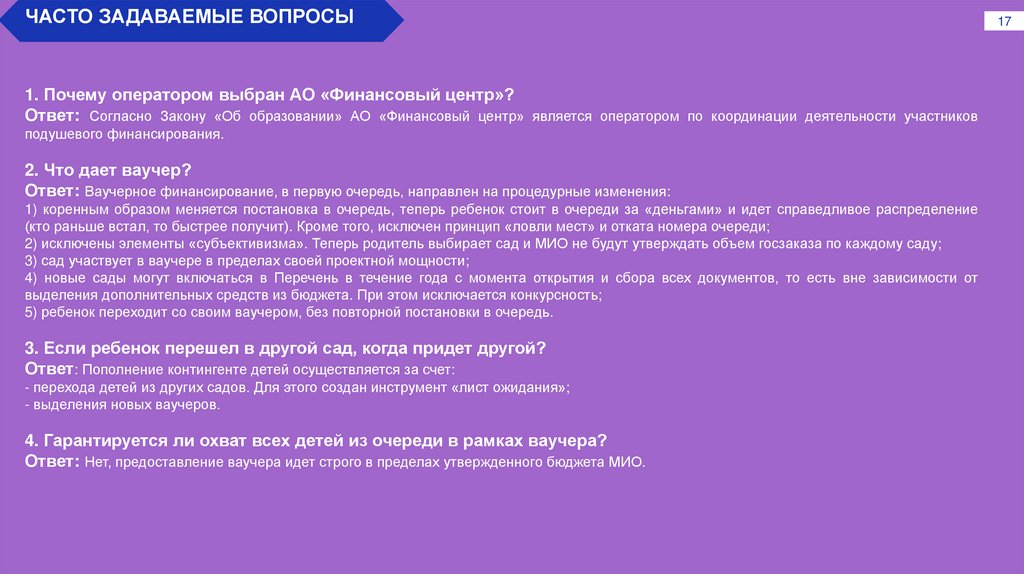 ЧАСТО ЗАДАВАЕМЫЕ ВОПРОСЫ1. Почему оператором выбран АО «Финансовый центр»?