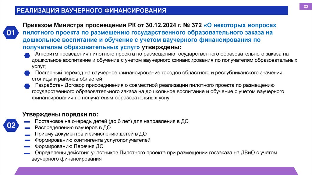 Ответ: Ваучерное финансирование, в первую очередь, направлен на процедурные изменения: