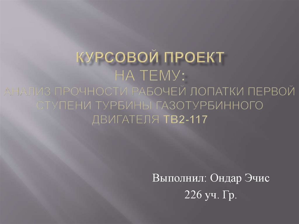КУРСОВОЙ ПРОЕКТ на тему: Анализ прочности рабочей лопатки первой ступени турбины газотурбинного двигателя ТВ2-117