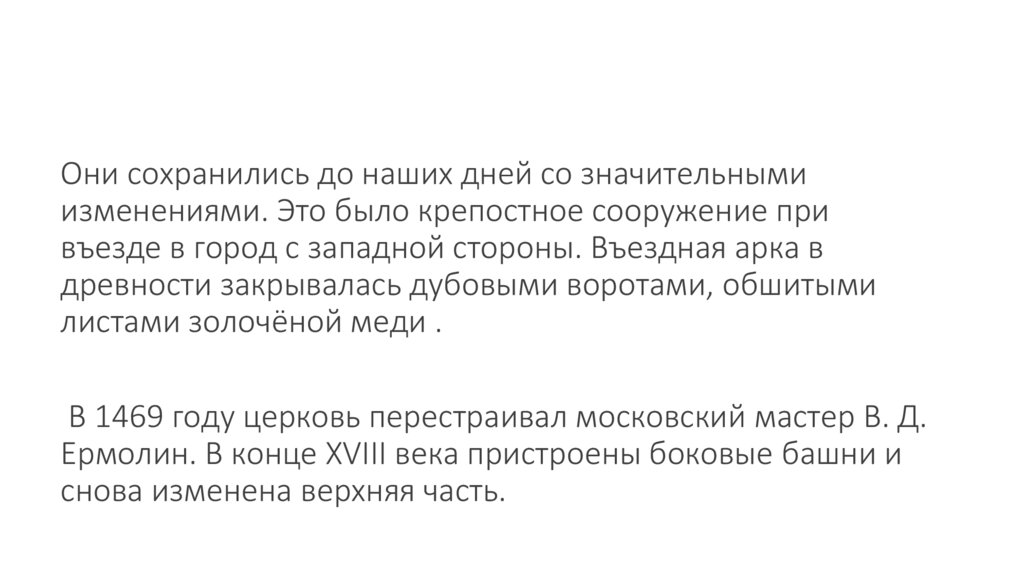 Они сохранились до наших дней со значительнымиизменениями. Это было крепостное сооружение при