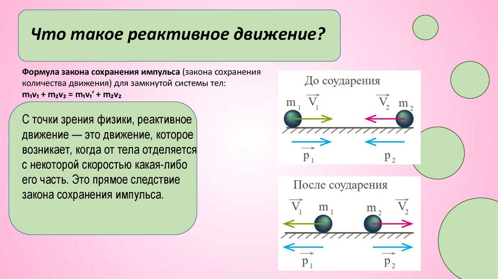 Что такое реактивное движение?Формула закона сохранения импульса (закона сохранения