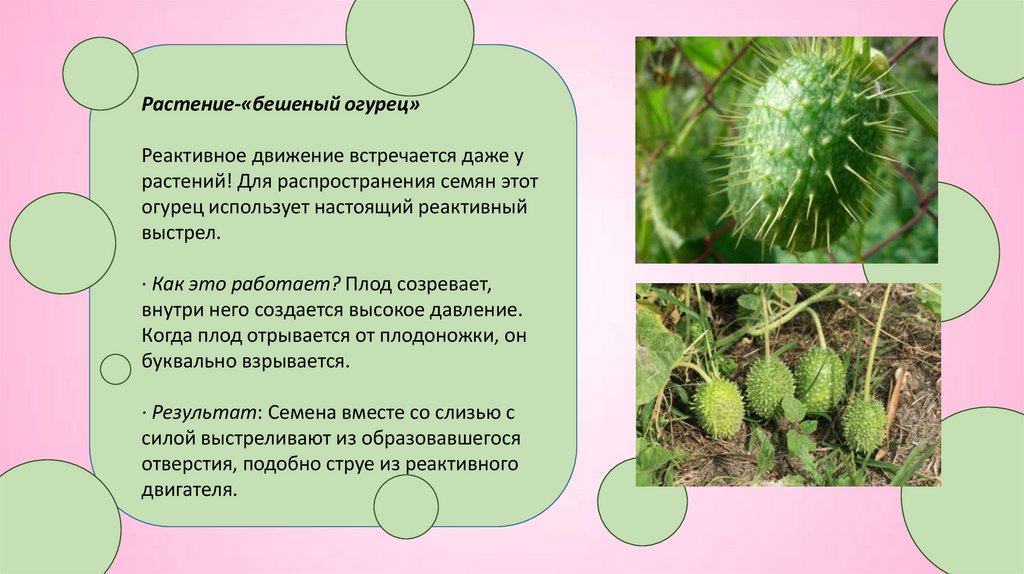 Растение-«бешеный огурец»Реактивное движение встречается даже у