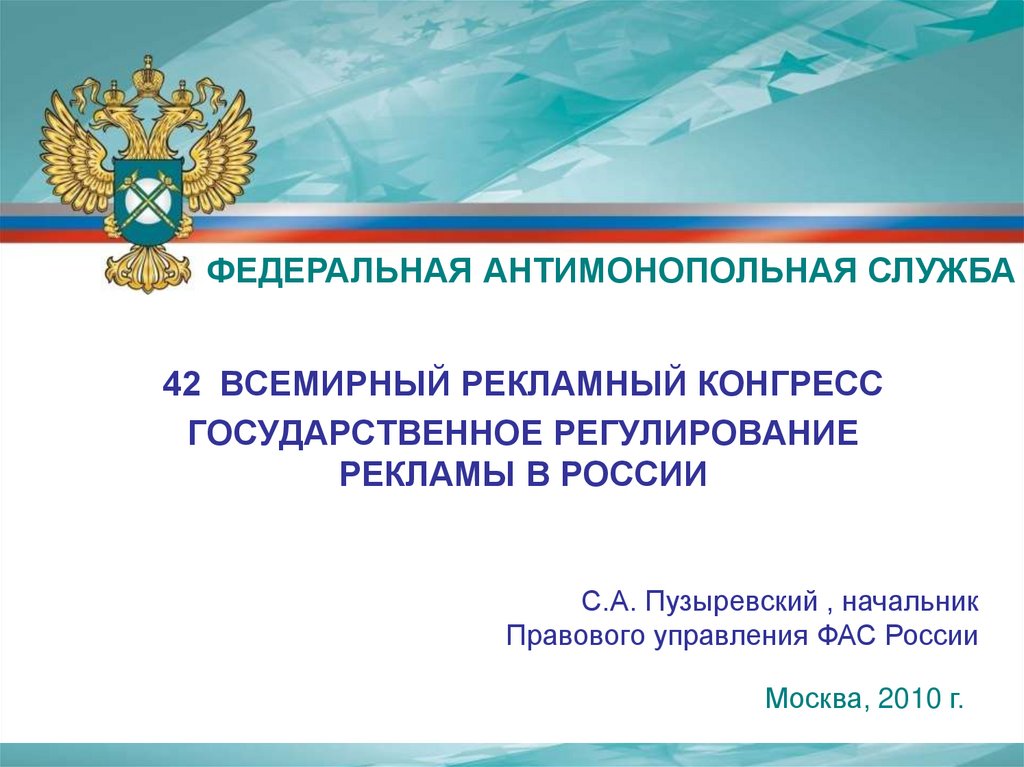 ФЕДЕРАЛЬНАЯ АНТИМОНОПОЛЬНАЯ СЛУЖБА42 ВСЕМИРНЫЙ РЕКЛАМНЫЙ КОНГРЕСС