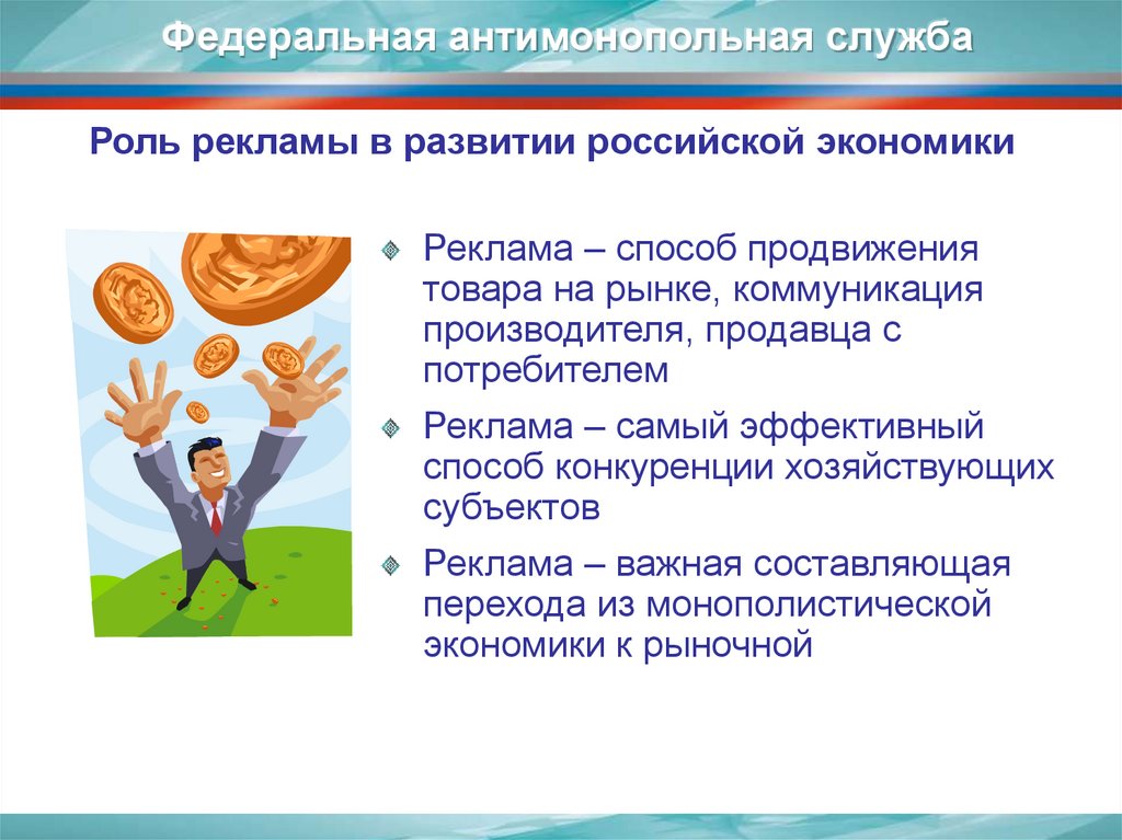 Федеральная антимонопольная службаРоль рекламы в развитии российской экономики