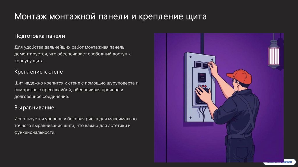 Монтаж монтажной панел и и крепление щитаПодготов ка панел и