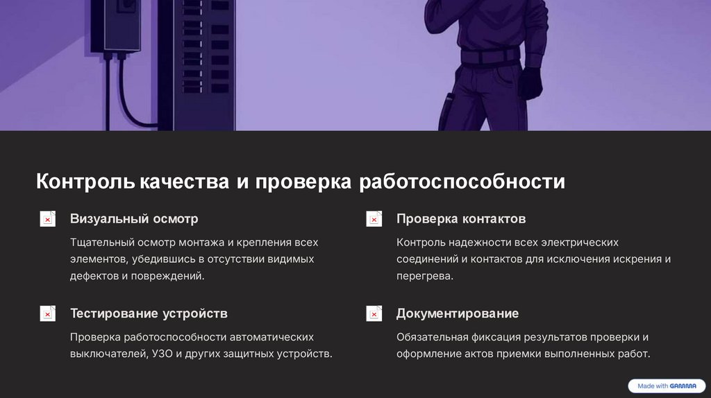 Контроль качества и проверка работоспособностиВизуальный осмотр